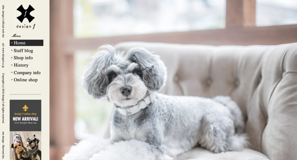 オリジナルの犬用グッズやアパレルも扱うサロンのサイト。